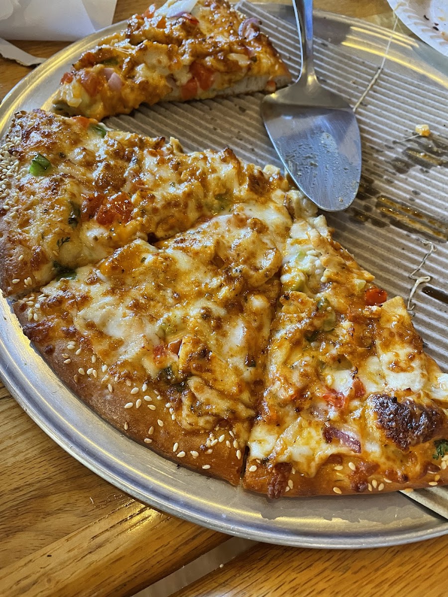 10 years since I've first tried the pizza here with its sesame crust generous amount of toppings and consistency and I have yet been able to find a competitor even CLOSE. Do yourself a favor and stop by to grab some of the best pizza in the bay area.